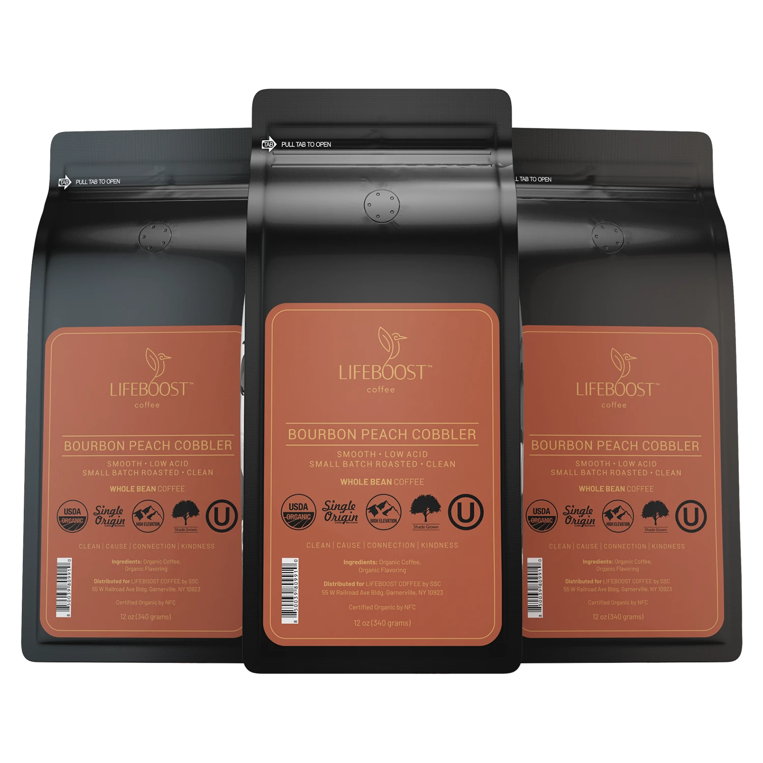 From the hands of expert coffee farmers in Nicaragua to the charred oak bourbon barrels of a small craft distillery in the Poconos Mountains, single origin, premium coffee beans age for 30-45 days…Just long enough to infuse our signature Lifeboost low acid specialty beans with the classic bourbon flavors of slightly sweet vanilla and caramel.