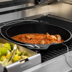 Fast wie am Lagerfeuer: der Dutch Oven ist ein wahres Multitalent. Klassisch kochen, schmoren, im Deckel braten: die vielseitigen Elemente des Dutch Ovens lassen keine Wünsche offen. Und der Gusseisenrost ist dafür der perfekte Platz, um durch die Aussparung den Dutch Oven in den G32 Connected einzulassen.