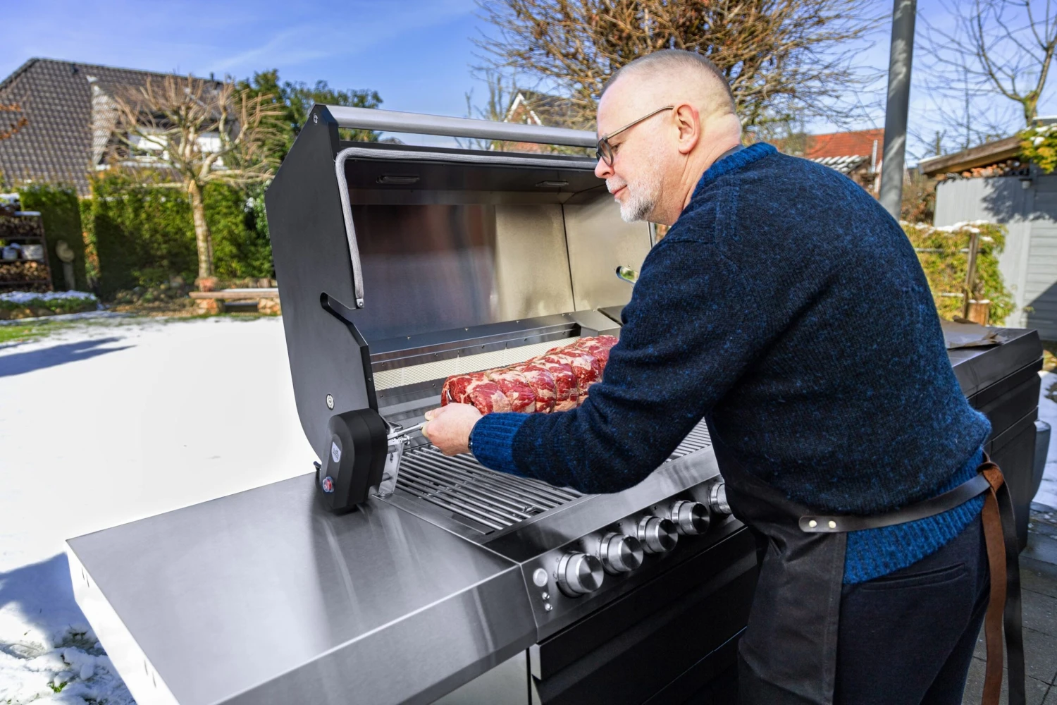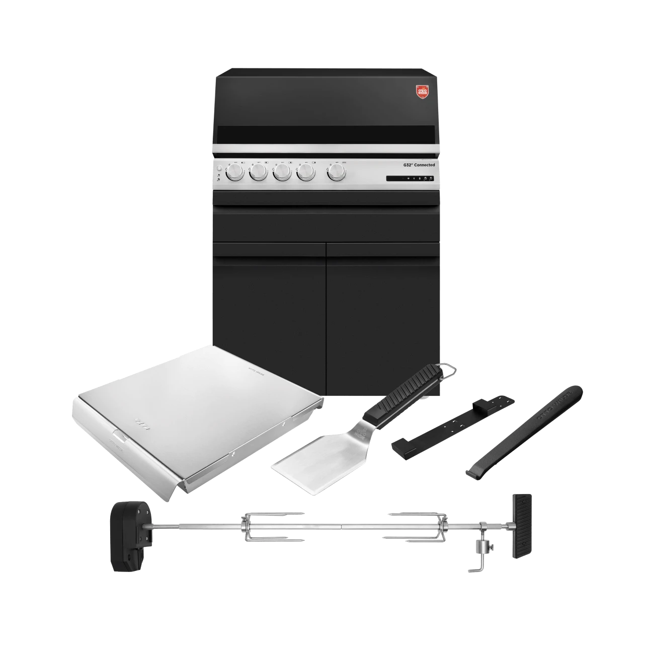 Das „Röst Profi“-Bundle bringt mit der Rotisserie und dem Garkorb das essenzielle Zubehör, um am Gasgrill G32 Connected Gerichte mit herrlichen Krusten oder Röstaromen zu servieren. Zudem bietet der Gasgrill G32 schier endlose Optionen, um die richtigen Temperaturen der Brenner und des Garguts am Smartphone auszulesen.