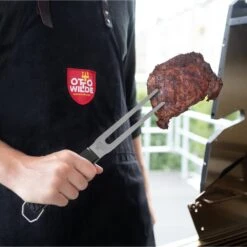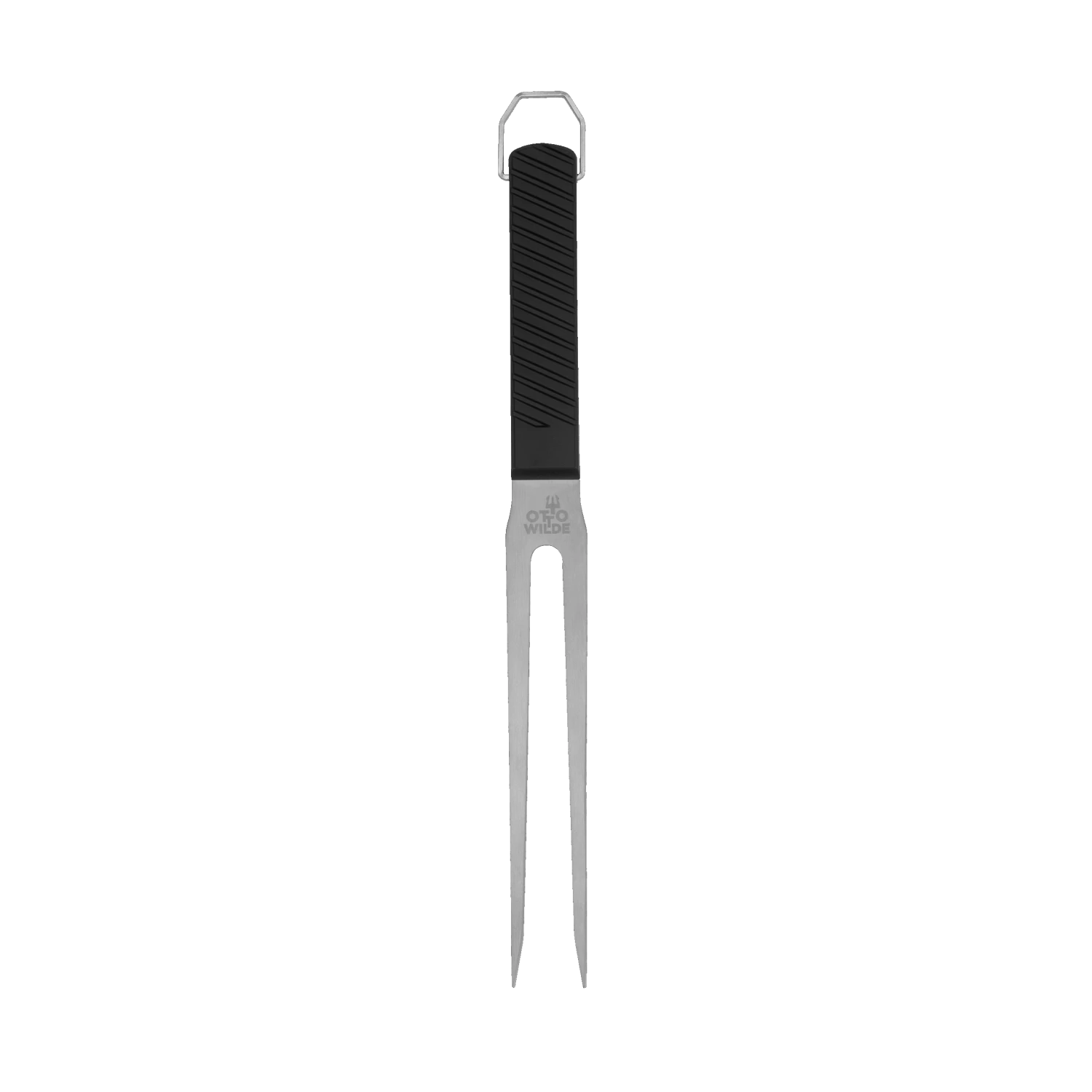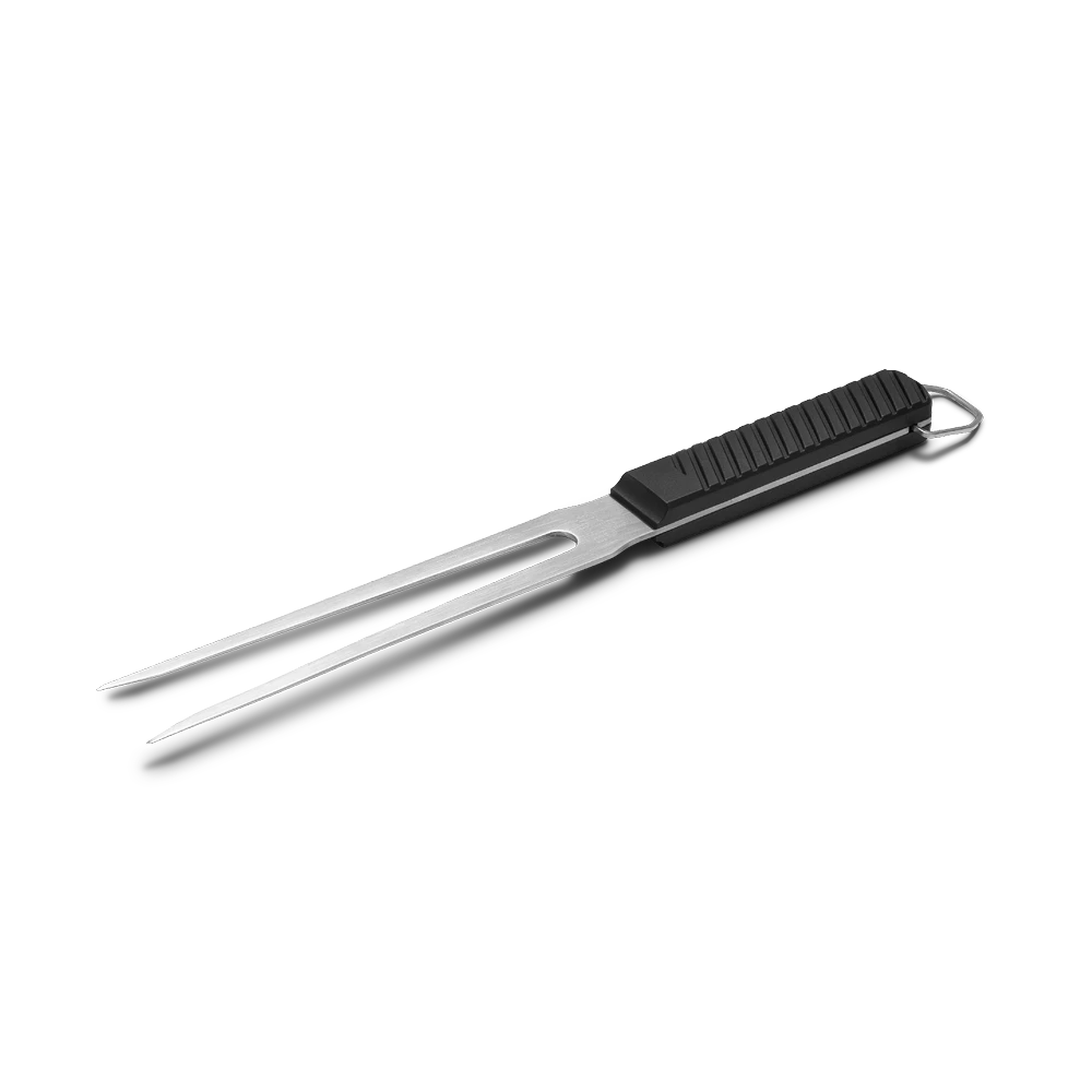Formschöne Fleischgabel aus Edelstahl mit Griff aus Kunststoff.