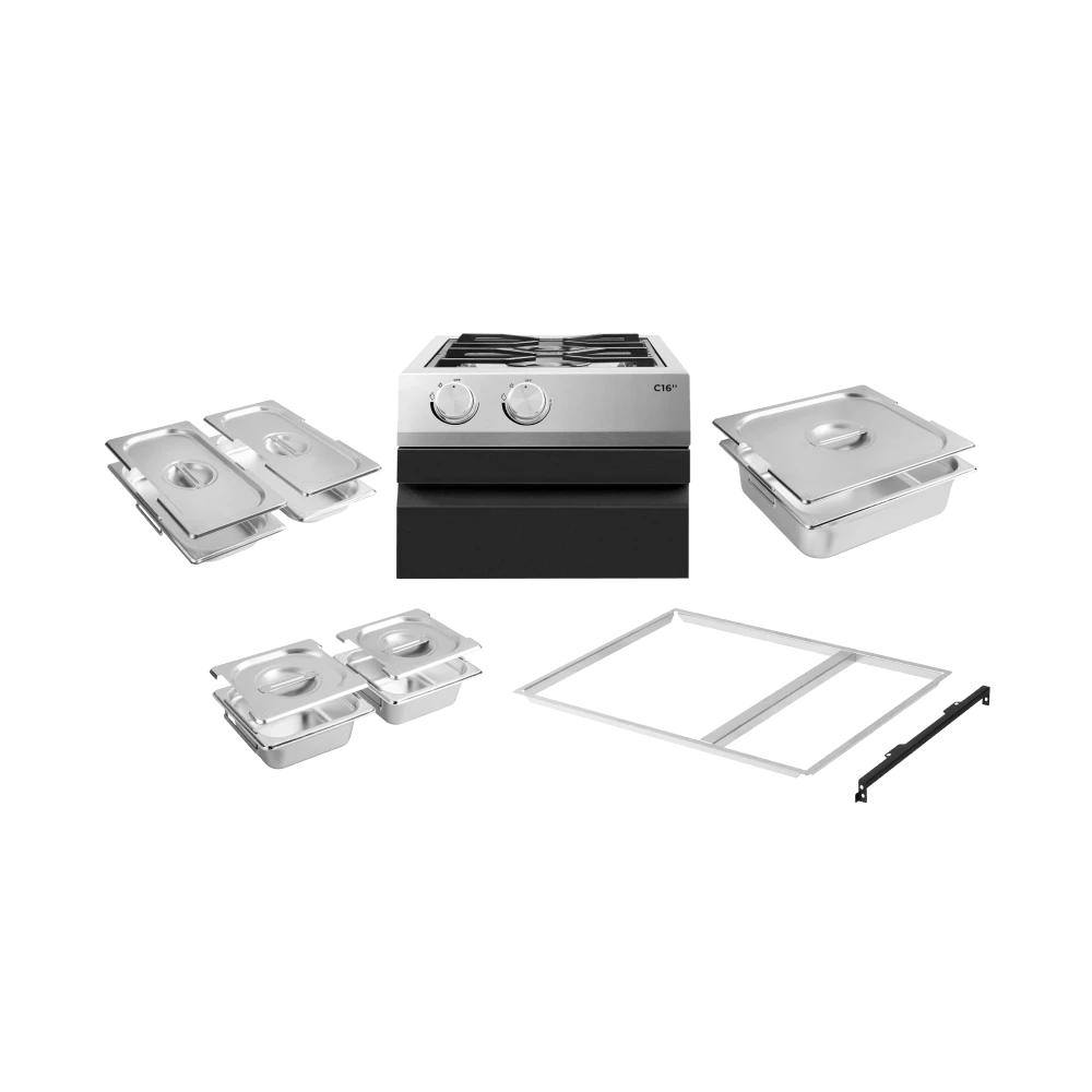 Erweitere deinen G32 Connected oder deine Outdoor-Küche um ein Kochfeld. Das Bundle enthält das C16 Add-On mit einem passenden Stauraum Set, damit du beim Kochen alles griffbereit hast. Variiere je nach Bedarf zwischen flachen und tiefen Behältern.