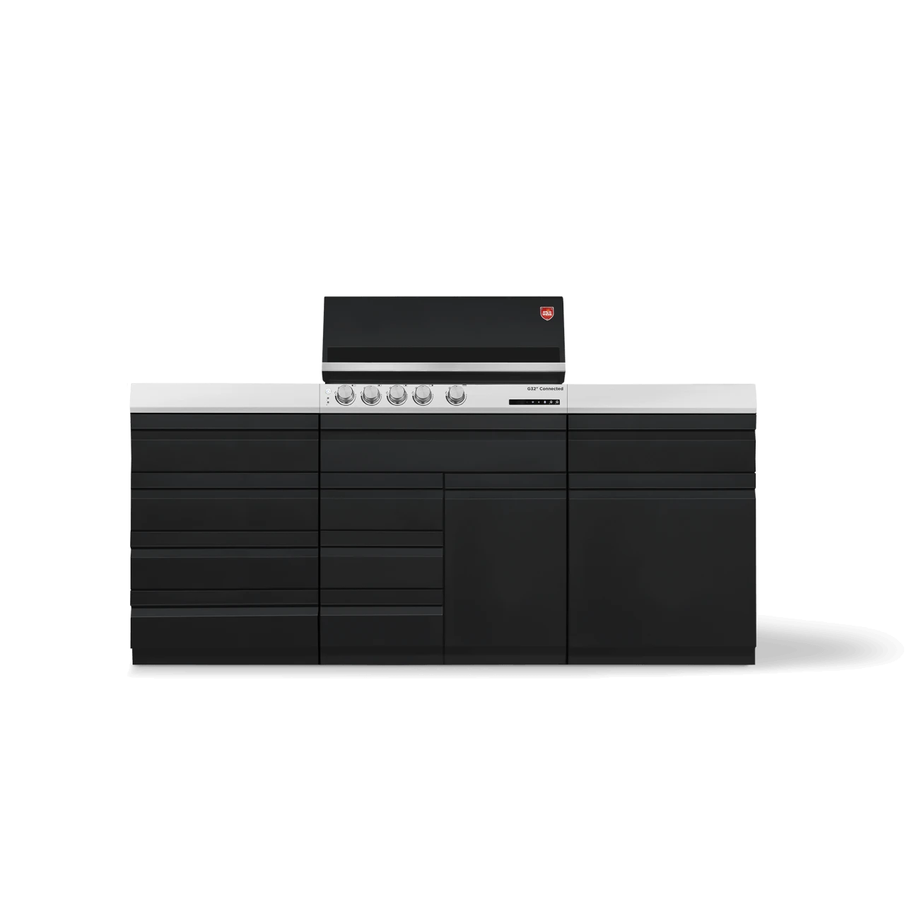 Im Herzen ein Gasgrill G32 Connected, links und rechts eingerahmt von zwei S24 Stauraummodulen für mehr Platz zum Arbeiten. Das sind die Vorzüge der Outdoor-Küche „Oslo“.