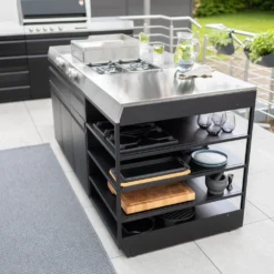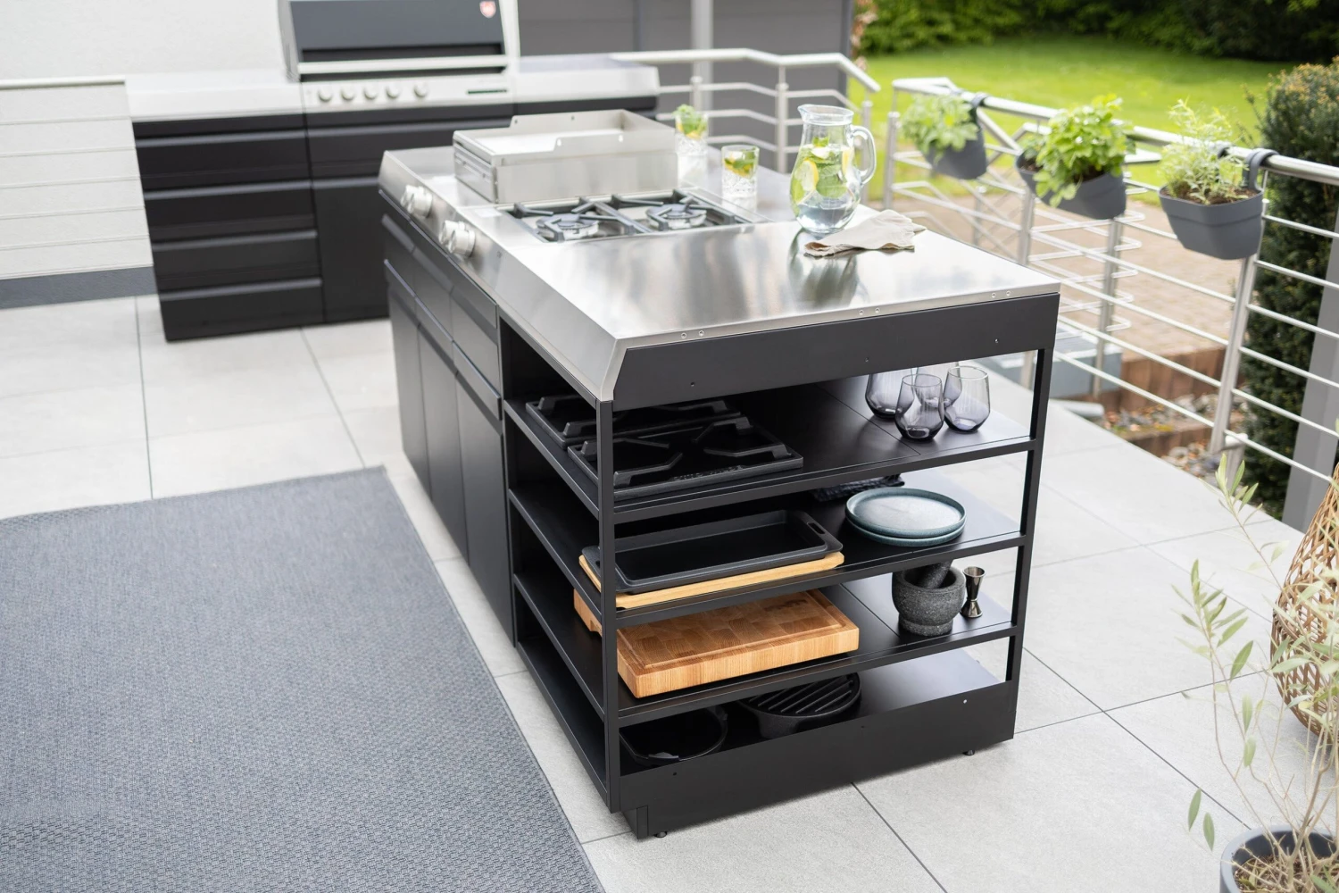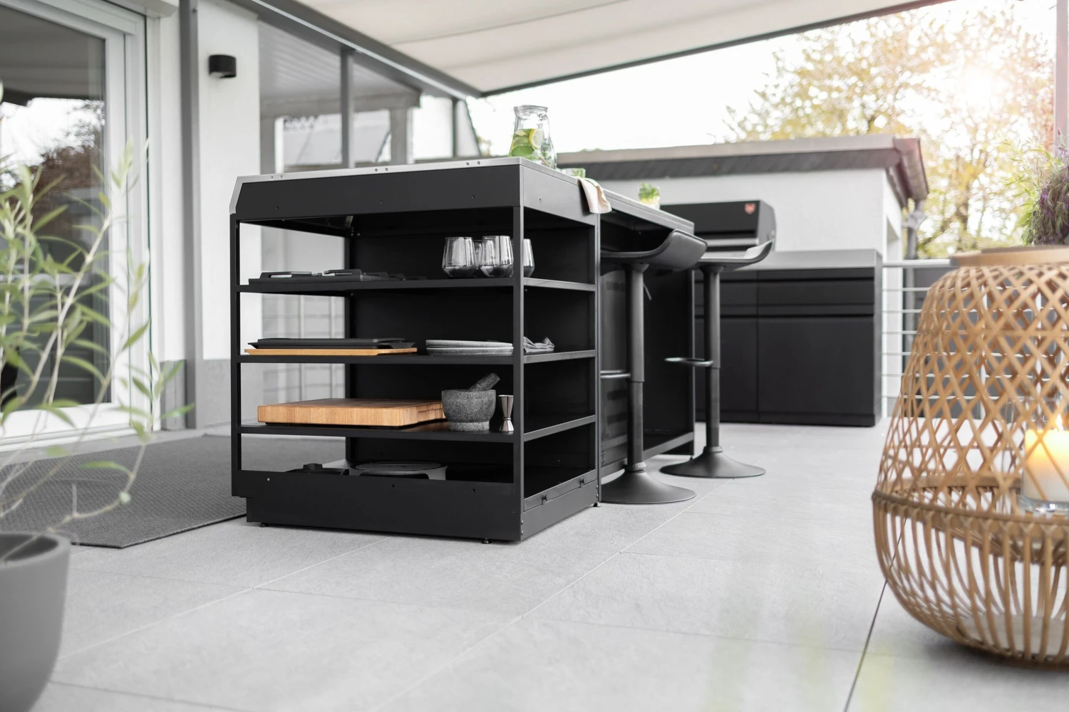 Mit dem Regalboden Set kann der Stauraum des Regalmodul R24 individuell eingestellt und erweitert werden, sodass alles seinen Platz findet – egal ob als Teil einer Outdoor-Küche oder einer Outdoor-Kücheninsel.