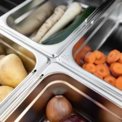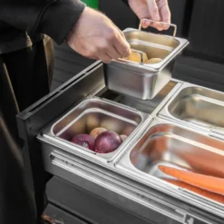 Bringe mit dem Schubladen-Set “Vorbereitung” mehr Aufteilung in deine 16 Zoll Schubladen. Die mitgelieferten Gastronormschalen bieten genug Platz, um vorbereitete Zutaten zu verstauen und schnell griffbereit zu haben.
