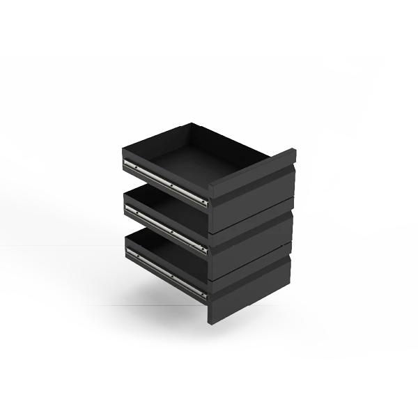 Das Schubladen Upgrade gibt Dir die Möglichkeit, Deine 16 oder 32 Zoll Module mit Schubladen auszustatten.