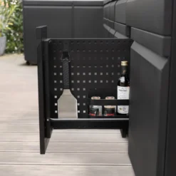 Maximiere die Nutzbarkeit des Apothekerauszugs und hole mit diesem Set jeden Zentimeter an Stauraum heraus. Die Kombination aus Ablagen und Küchenrollenhalter lassen selbst auf kleinstem Raum viel Platz entstehen.