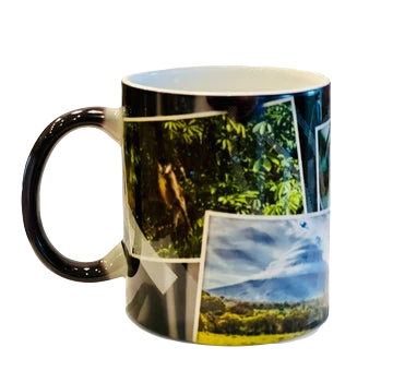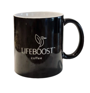 The mug starts off black, with the Lifeboost logo and when you add hot coffee, it instantly changes to picturesque views of some of the most beautiful areas in Nicaragua where our coffee is grown! You’ll also spot the bird in our logo, the gorgeous turquoise-browed mot mot which is the National Bird of Nicaragua.