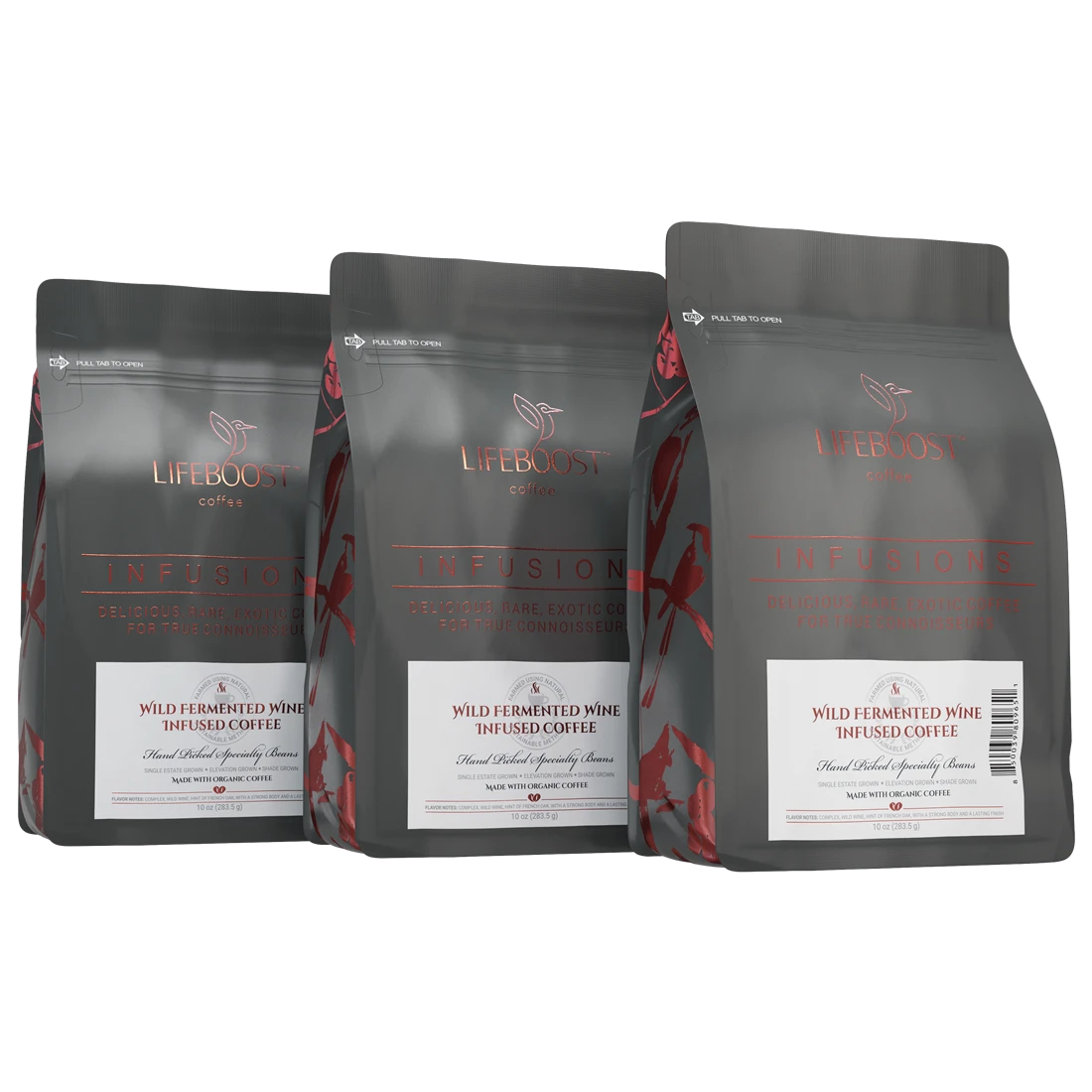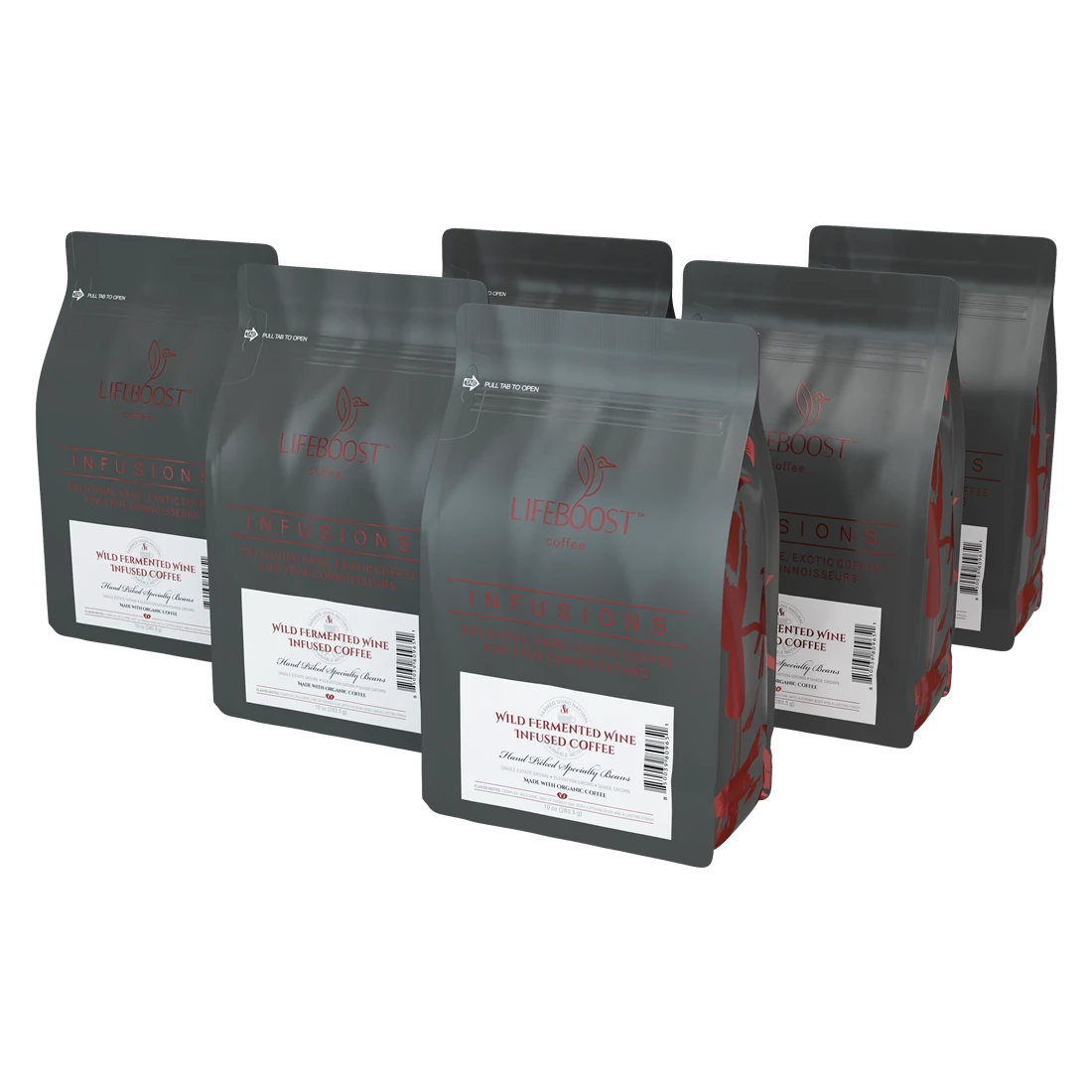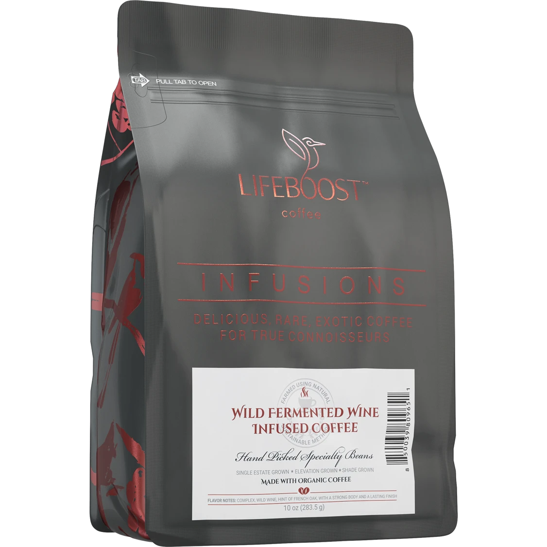 An unlikely marriage of wild and wonderful, the traditional flavors and aromas of shade grown, meticulously processed, perfectly roasted, specialty coffee beans mingle delightfully with wild wine, produced without the addition of yeasts or bacteria, benefited by naturally occurring microorganisms growing independent of man’s intervention, a fermentation process that perfectly delivers a unique, natural, and tantalizing flavor.
